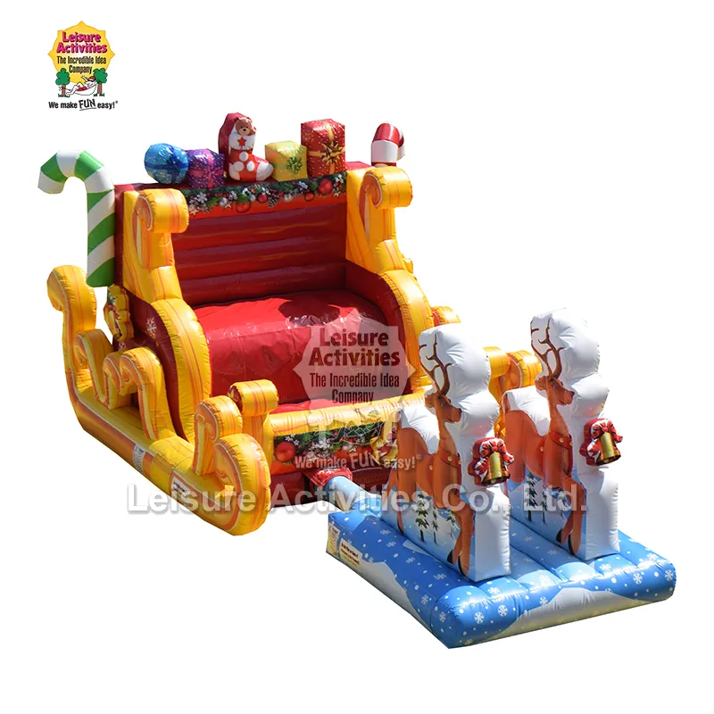 Leisure Activities® on ammattimainen puhallettavien tuotteiden valmistaja ja toimittaja. Ilmatäytteinen Santa Sleigh Selfie poron kanssa on valokuvaukseen tarkoitettu puhallettava sisustusvaruste, joka on suunniteltu erityisesti joulusesonkiin. Siinä on joulupukin reki ja poro, jossa keskitytään lomakuvaustoimintoihin. Se on valmistettu korkealaatuisista materiaaleista ja on turvallinen ja yhteensopiva.