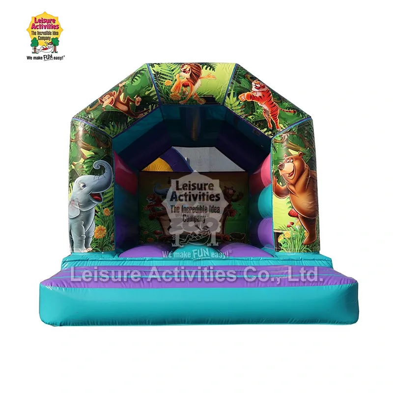 Ammattimaisena puhallettavien linnojen valmistajana ja toimittajana Kiinassa Leisure Activities® tarjoaa laajan alan kokemuksen ja vahvan tuotantokyvyn, minkä ansiosta voimme tarjota asiakkaillemme kustannustehokkaita, turvallisia ja luotettavia tuotteita. Mini puhallettava Bouncy Castle A Frame Purple Teal With Roof yhdistää käytännöllisyyden, kestävyyden ja mukavuuden. Sillä on selviä leasing-etuja, se mahdollistaa teemojen räätälöinnin ja sopii erilaisiin skenaarioihin. Olipa kyseessä kaupallinen leasing tai henkilökohtainen käyttö, se on erittäin kustannustehokas valinta, joka auttaa asiakkaita vähentämään käyttökustannuksia ja lisäämään voittoja.