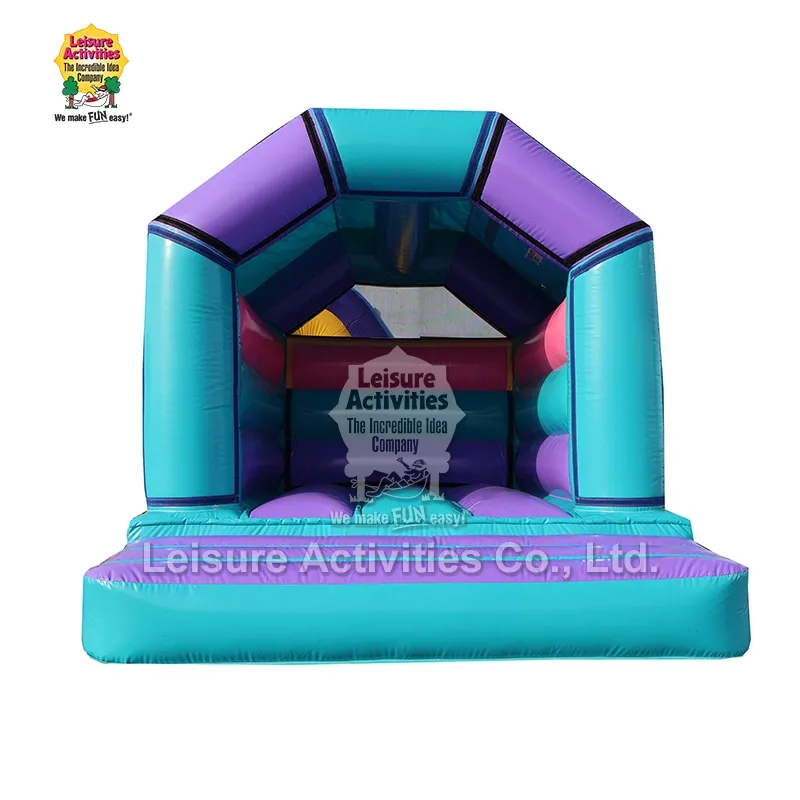 Leisure Activities® on ammattimainen puhallettavien linnojen valmistaja ja toimittaja Kiinassa, jolla on oma tehdas. Mini puhallettava pomppulinnamme A Frame Purple Teal With Roof voidaan räätälöidä eri teemoilla eri festivaalien ja vuodenaikojen mukaan. Se on valmistettu korkealaatuisista materiaaleista ja ommeltu kaksoislankatekniikalla, joka on tukeva ja kestävä ja täyttää EN14960 turvallisuusstandardit.