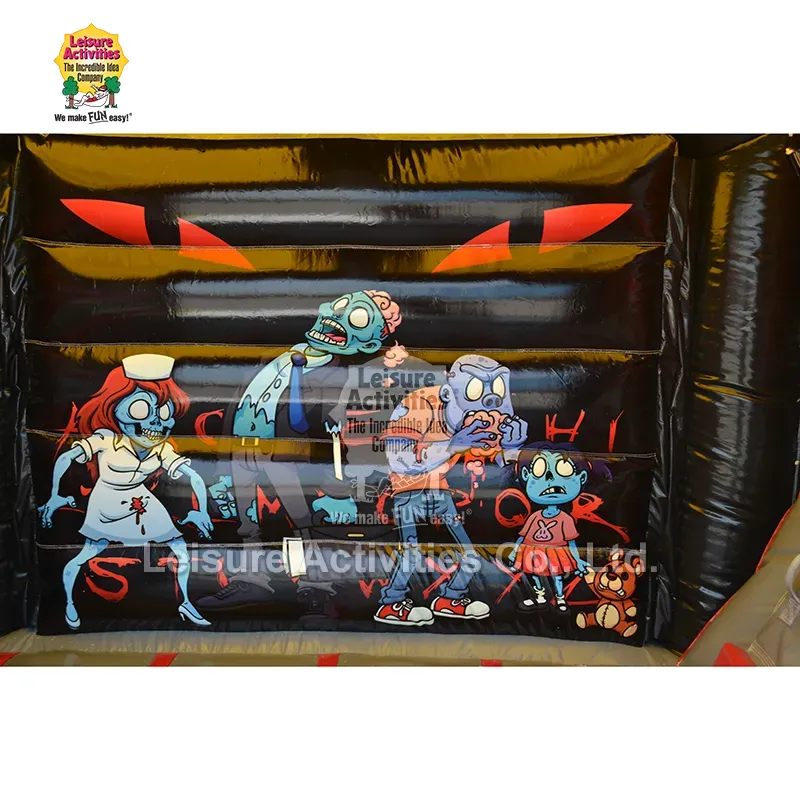 Leisure Activitiesilla on oma tehdas, ja se valmistaa ja toimittaja Pieni puhallettava Multiplay Bouncy Castles Haunted with Slide Kiinassa. Tässä tuotteessa on rohkeita väriteemoja, jotka luovat jännittävän ympäristön. Se sopii erittäin hyvin Halloween-juhliin, syysfestivaaleihin, teemallisiin syntymäpäiviin ja viihteeseen.