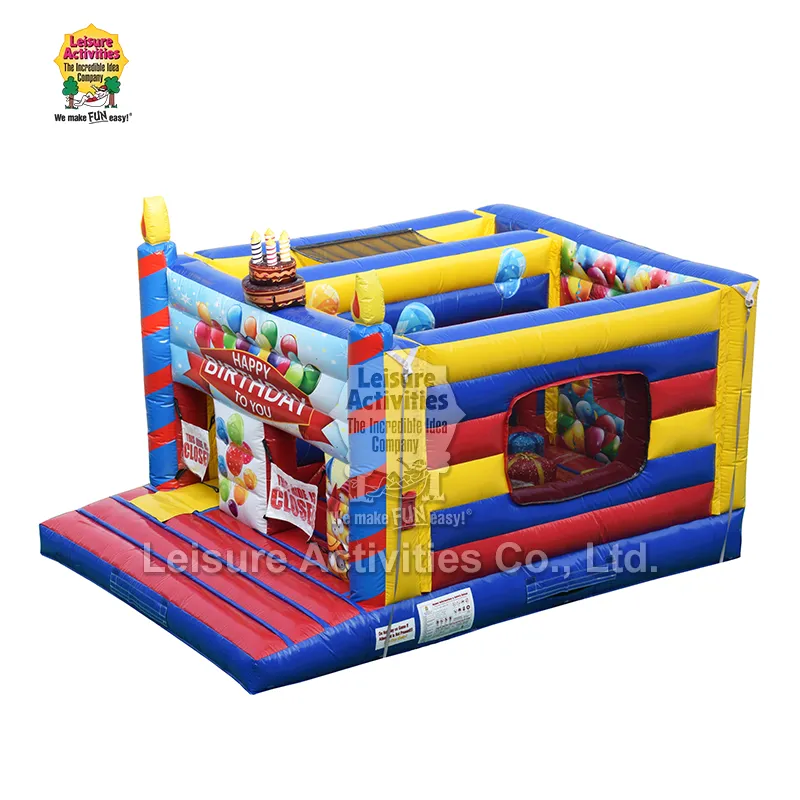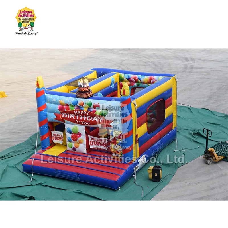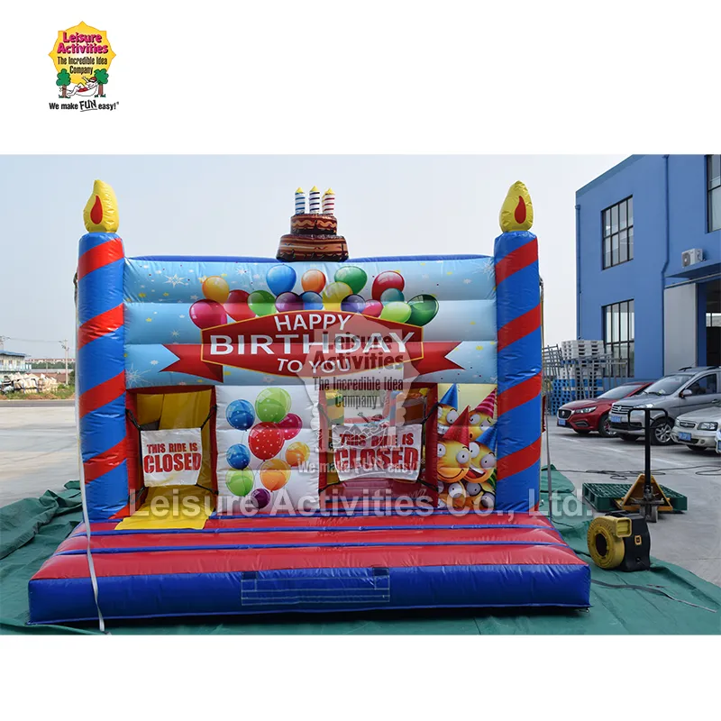 Leisure Activities® on ammattimainen puhallettavien tuotteiden valmistaja ja toimittaja Kiinassa, jolla on yli 30 vuoden kokemus puhallettavasta teollisuudesta. Standardin puhallettava Multiplay Bouncy Castles Happy Birthday on itse kehittämä ja valmistamamme. Se on keskittynyt värikkääseen syntymäpäiväteeman suunnitteluun, jossa huomioidaan sekä turvallisuus että hauskanpito, ja se on suunniteltu erityisesti erilaisiin syntymäpäiviin ja lasten toimintaan.